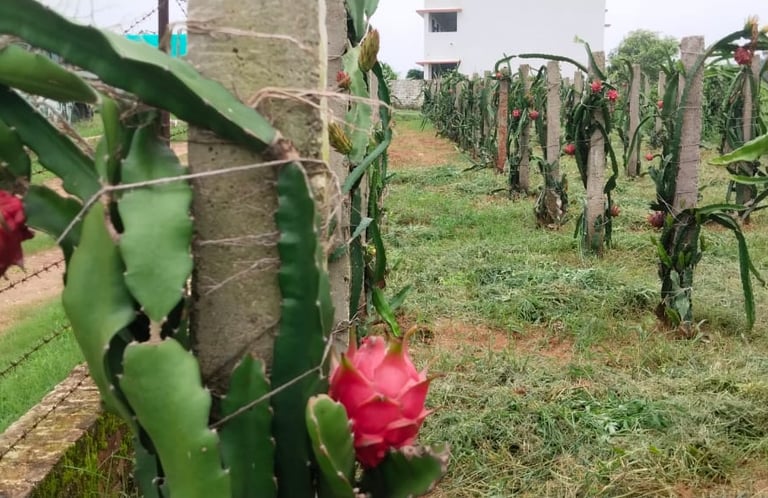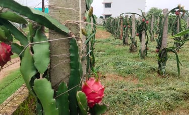 A special Dragon fruit orchard has been developed. These are highly delicate fruits with a wide range of health benefits. Dragon fruit cultivation offers a profitable farming opportunity. It is future climate resilient fruit plant.