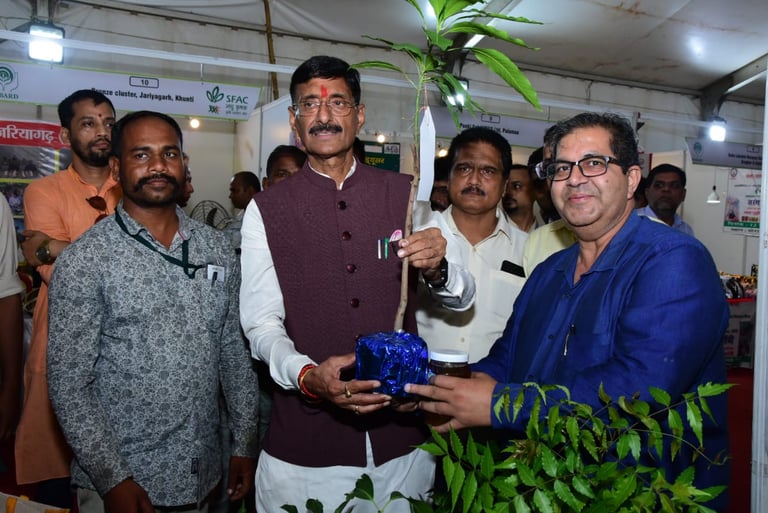 Hon’able Sri Sanjay Seth, MP, Lok Sabha and State minister of Defence, GoI visited the Stall at Mela organised by NABARD at Morabadi Ground, Ranchi.